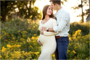 The side profile of daddy kissing mommy’s belly is a great and simple idea. Just make sure there’s ample light so shadows don’t overtake the picture.