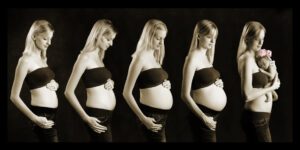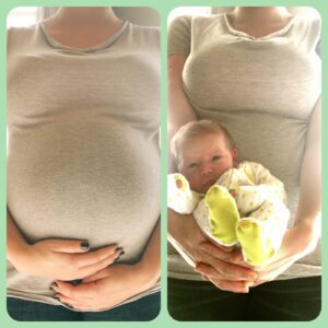 Weekly Progression Pregnancy Photos Including One with Newborn