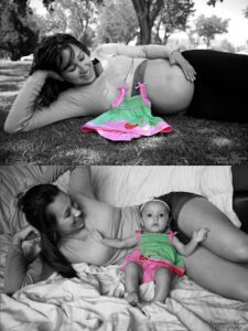 Just one example of how you can plan ahead just a little for a wonderful and adorable pregnancy and baby photo. I love how this photographer colored the outfit and nothing else, really drawing your eye in.